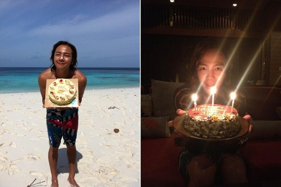 사진 속 장근석은 바닷가에서 반바지만 입은 채 케이크를 들고 함박웃음을 짓고 있다. 그의 코에는 케이크 크림이 묻어 있어 유쾌했던 파티 분위기를 짐작케 한다. 또 다른 속 장근석은 어두운 실내에서 생일 케이크 촛불만 켜 놓은 채로 행복한 미소를 띄고 있다.