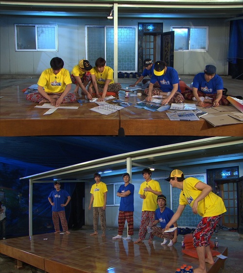 하루 일과를 마치고 잠자리에 들기 전, 국내파(이민우, 김동완, 전진)와 해외파(에릭, 신혜성, 앤디)는 딱지 멀리던지기 대결에 나섰다.