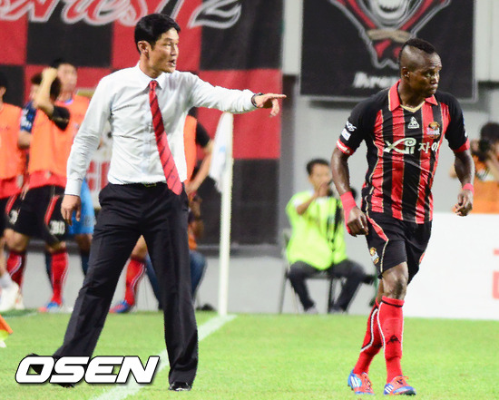 4일 오후 서울월드컵경기장에서 벌어진 '현대오일뱅크 K리그 2012' 25라운드 FC 서울-강원 FC의 경기 종료, 최용수 감독이 서울 아디에게 작전을 지시하고 있다.