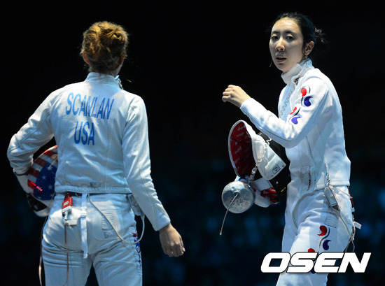 신아람과 정효정(28, 부산시청) 최인정(22, 계룡시청) 최은숙(26, 광주서구청)으로 구성된 여자 펜싱 에페 대표팀(세계랭킹 10위)은 4일(한국시간) 영국 런던 엑셀 사우스 아레나에서 열린 2012 런던올림픽 펜싱 여자단체 에페 준결승전에서 세계랭킹 5위 미국을 상대로 45-36 승리를 거두며 결승 진출에 성공했다. / jpnews@osen.co.kr