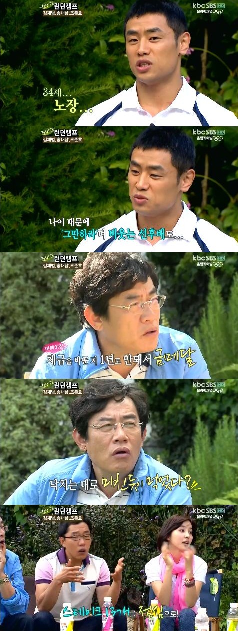 4일 방송된 SBS '힐링캠프, 기쁘지 아니한가' 런던올림픽 '런던캠프, 기쁘지 아니한가'(이하 런던캠프)에서는 유도 영웅 김재범, 송대남, 조준호 선수의 경기 뒷얘기가 전파를 탔다.