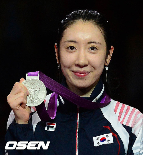 신아람(26, 계룡시청)이 활짝 웃었다. 신아람과 정효정(28, 부산시청) 최인정(22, 계룡시청) 최은숙(26, 광주서구청)으로 구성된 여자 펜싱 에페 대표팀은 5일(이하 한국시간) 영국 런던 엑셀 사우스 아레나서 열린 '2012 런던 올림픽 펜싱 여자 에페 단체전' 중국과 결승전에서 아쉽게 패하며 은메달을 목에 걸었다.
