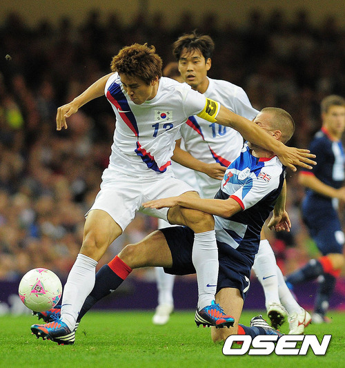 [OSEN=카디프(영국), 올림픽공동취재단] 5일(한국시간) 새벽 웨일즈 카디프시티의 밀레니엄 스타디움에서 열린 2012런던올림픽 남자축구 8강전 영국과의 경기 구자철이 볼다툼을 하고 있다.