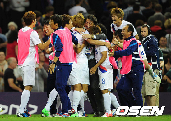 5일 새벽(한국시간) 영국 카디프에 위치한 밀레니엄 스타디움서 열린 '2012 런던 올림픽 남자 축구' 영국과 8강전에서 한국은 연장 접전 끝에 1-1로 비긴 후 승부차기서 5-4로 승리를 거두며 4강에 진출했다. 한국은 오는 8일 브라질과 결승 진출 티켓을 놓고 격돌한다./ jpnews@osen.co.kr