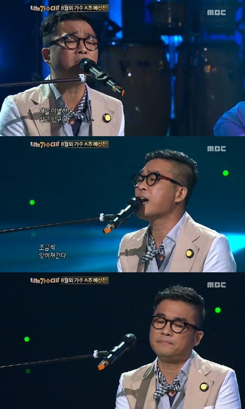 김건모는 5일 오후 방송된 MBC ‘일밤-나는 가수다2’(이하 나가수2)에서 고(故) 김광석의 노래 ‘서른 즈음에’를 편곡해 선보였다. 그는 “노래를 듣다 ‘머물러 있는 청춘인 줄 알았는데’라는 부분에서 울컥했다”며 평소와 다르게 진지한 모습을 비쳤다.