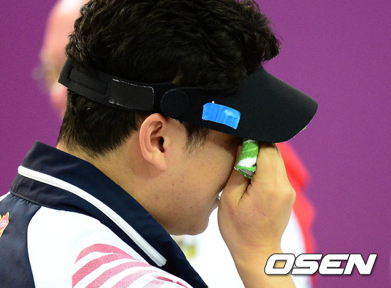경기를 마치고 진종오가 눈물을 닦고 있다. /jpnews@osen.co.kr