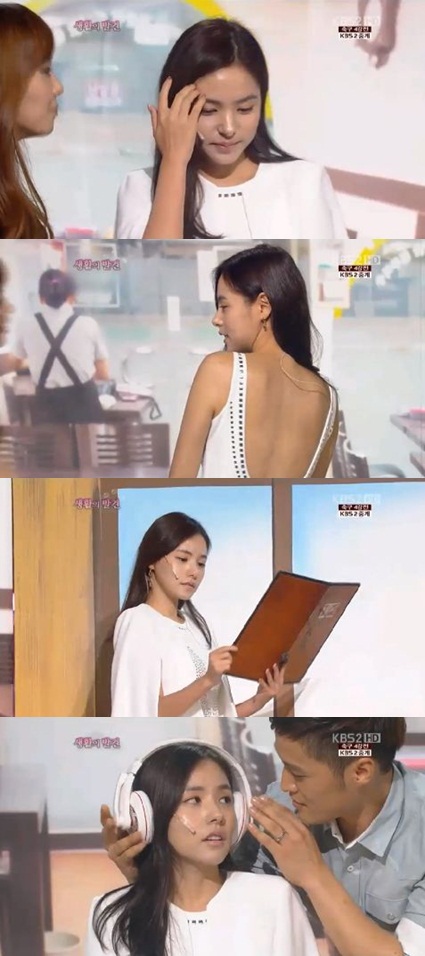 5일 오후 10시 방송된 KBS 2TV '개그콘서트-생활의 발견'에 송준근의 새 여자친구로 등장한 민효린이 등장해 예쁜 미모와 재치있는 입담을 과시했다.