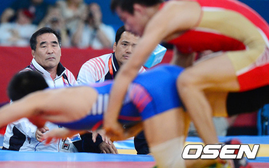 방대두 레슬링 감독이 최규진을 바라보고 있다. /jpnews@osen.co.kr