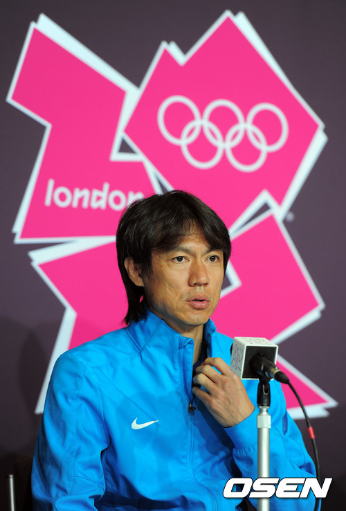 [OSEN=런던(영국), 올림픽공동취재단] 6일 새벽(이하 한국시간) 영국 맨체스터시 올드 트래포드 스타디움에서 진행된 '2012 런던올림픽' 남자 축구 4강 경기 기자회견에서 홍명보 대한민국 올림픽 축구 대표팀 감독이 질문에 답을 하고 있다.
