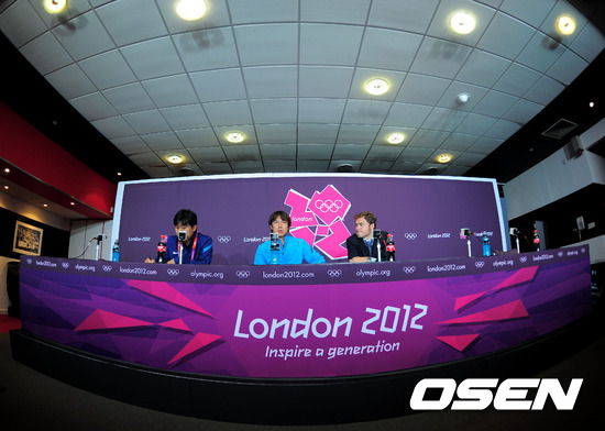 [OSEN=런던(영국), 올림픽공동취재단] 6일 새벽(이하 한국시간) 영국 맨체스터시 올드 트래포드 스타디움에서 진행된 '2012 런던올림픽' 남자 축구 4강 경기 기자회견에서 홍명보 대한민국 올림픽 축구 대표팀 감독이 질문에 답을 하고 있다.