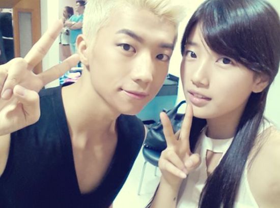 걸그룹 미쓰에이의 수지가 2PM 멤버 우영과 찍은 다정샷을 공개했다.