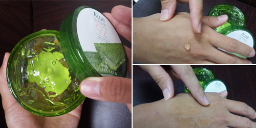 매우 묽은 수분 젤 형태의 제품으로, 얼굴 전용으로 출시됐다. 손등이나 몸에 시험삼아 발랐을 때는 끈적임이 덜한데, 얼굴에 바르면 얼굴의 유분과 땀 때문인지 다소 끈적임이 있는 점이 아쉽다.(이게 다 지성 피부 때문이다!) 하지만 진정효과는 확실한 것으로 보인다. 얼굴에 수분 팩 대용으로 두텁게 바르고 하룻밤을 자고 나니 피부가 눈에 띄게 촉촉해지고 다음날 메이크업 또한 더 잘 먹는 효과를 보였다.