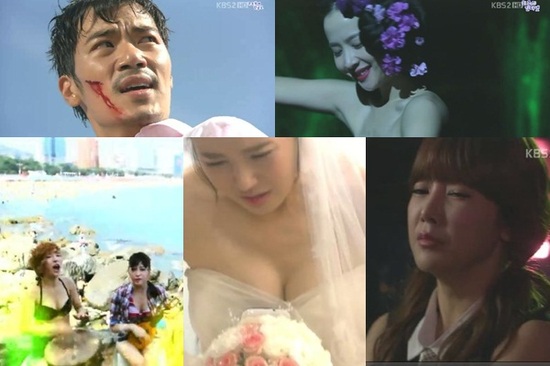 두 사람 이외에도 극 중 김강우와 결혼식을 올린 남규리 역시 웨딩드레스를 입은 모습으로 환상적인 볼륨감을 뽐냈다. 앳된 외모와 상반된 몸매는 눈길을 사로잡기에 충분했다. 또 남규리의 친구로 등장한 강민경 역시 하의실종 의상으로 멋진 몸매를 과시했다.