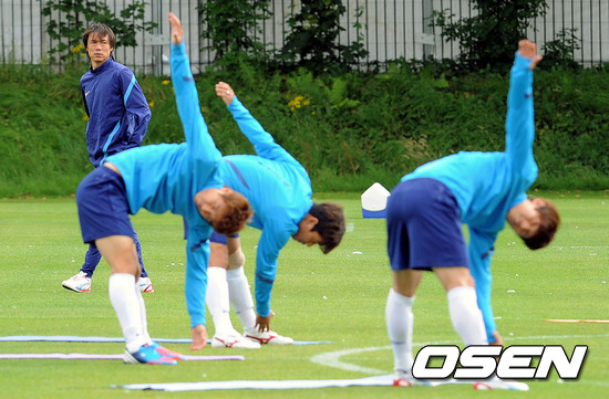 홍명보 감독이 훈련 중인 선수들을 바라보고 있다. /photo@osen.co.kr