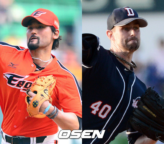 7일 대전구장에서 열리는 '2012 팔도 프로야구' 한화와 두산 시즌 12차전이 뜨거운 관심을 모으고 있다. 후반기 12경기 8승4패로 나란히 공동 1위에 오를 정도로 가파른 상승세를 타다 2연패로 주춤하고 있는 두 팀이 3연전 첫 날부터 세게 붙기 때문이다. 한화는 박찬호(39), 두산은 더스틴 니퍼트(31)를 선발 예고했다.