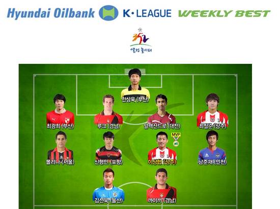 미드필더에는 이상협과 함께 최근 6경기 3득점으로 팀의 탈 하위권 프로젝트의 핵심 역할을 하고 있는 남준재(인천) 상대 공격루르를 끊는 '홀딩' 역할과 함께 수준급 침투패스로 공격 지원하는 신형민(포항) 늘 감각적인 득점으로 다양한 볼 거리를 제공하는 에이스 몰리나(서울)를 선정했다.