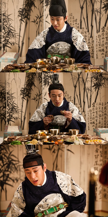 '세자 저하는 책을 보시면서 식사를 하셨다', '세자 저하는 고기만 드셨다' 등 호위무사 황구의 애타는 목소리따위는 귓등으로 듣지 않으며 급기야 세자의 체통도 잊은 채 서민 식사의 상징, 바가지를 들고 나물을 척척 올려 맛나게 비벼 먹기까지 해 보는 이들을 폭소케 한다.