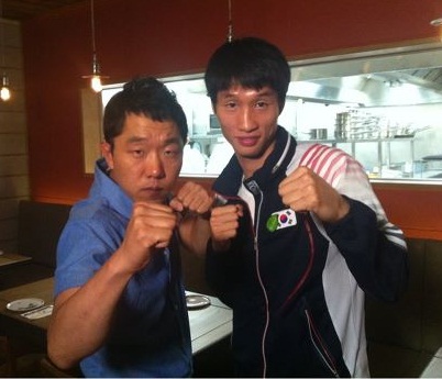 방송인 김제동이 2012 런던올림픽 남자 복싱 준결승에 오른 한순철(28, 서울시청) 선수와의 만남 인증 사진을 공개했다.