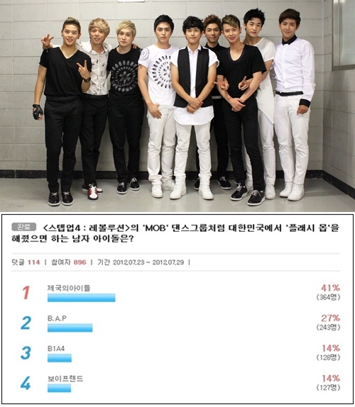 지난 달 말 한 설문 조사에서 '스텝업4:레볼루션'의 댄스그룹 MOB처럼 대한민국 플래시몹을 해줬으면 하는 아이돌에서 1위를 차지한 제국의 아이들은 이 영화의 한국 홍보대사로 선정됐다.