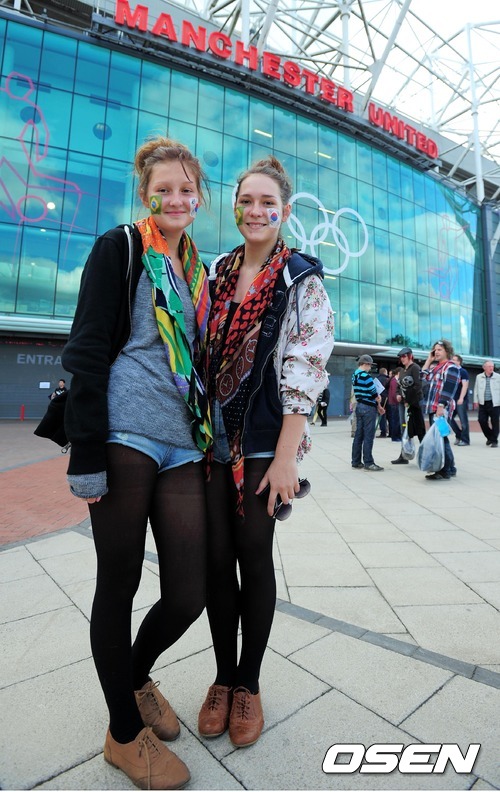 [OSEN=런던(영국), 올림픽공동취재단] 8일(한국시간) 새벽 영국 런던 맨체스터 올드 트래포드 스타디움에서 열린 ‘2012런던올림픽 남자축구’ 대한민국과 브라질의 준결승 경기, 외국 팬이 태극기를 페이스페인팅하고 경기장에 입장하고 있다.