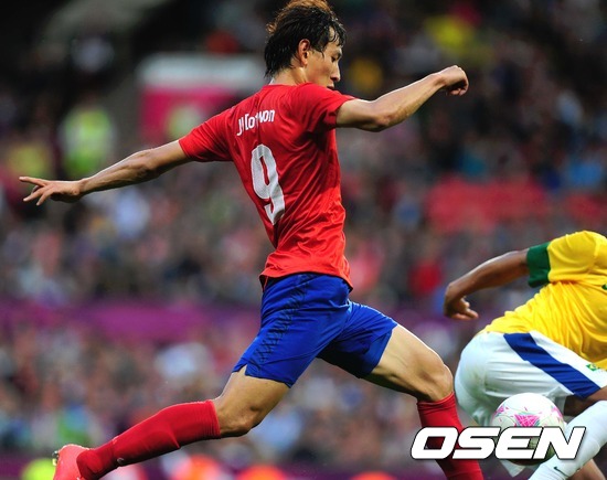 [OSEN=맨체스터(영국), 올림픽공동취재단] 8일(한국시간) 새벽 영국 런던 맨체스터 올드 트래포드 스타디움에서 열린 ‘2012런던올림픽 남자축구’ 대한민국과 브라질의 준결승 전반 지동원이 강력한 슈팅을 날리고 있다.