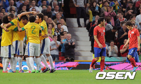 한국은 8일(한국시간) 새벽 영국 맨체스터에 위치한 올드 트래퍼드에서 열린 브라질과 2012런던올림픽 남자축구 4강전에서 0-3으로 완패, 결승 진출이 좌절됐다. 이로써 한국은 먼저 열린 경기에서 멕시코에 1-3으로 패한 일본과 3-4위전에서 맞붙게 됐다.