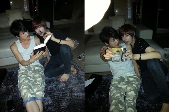 김재중은 지난 7일 오후 자신의 트위터에 "승현아 귀여워 귀여워"라는 글에 이어 "물로 짠하기 있기 없기?" 라는 글을 연이어 올리며 두 장의 사진을 게재했다.