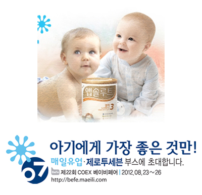 한편, '제 22회 베이비페어'에서 매일유업은 '앱솔루트 분유'와 '더블유 우유'를, 제로투세븐은 유아 한방스킨케어 '궁중비책', 영국 No.1 수유 및 이유 브랜드 '토미티피', 유아동복 브랜드 '알로&루', '알퐁소' 등을 선보인다.