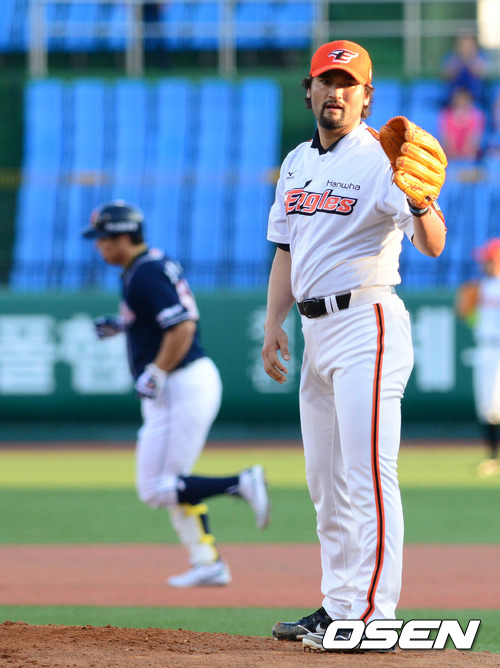 또 하나는 스트라이크존이었다. 이날 박찬호는 고개를 갸웃하는 장면을 수 차례 보였다. 1회 2사 후 김현수에게 솔로 홈런을 맞는 과정에서 1~2구 바깥쪽 직구, 4구 바깥쪽 변화구가 모두 볼 판정을 받은 뒤 바로 홈런을 맞았다. 3-3 동점이 된 5회 무사 1·3루에서도 오재원을 상대로 던진 7구째 바깥쪽 직구도 아깝게 스트라이크 판정을 받지 못했고 결국에는 볼넷을 내보내 대량실점으로 연결됐다.