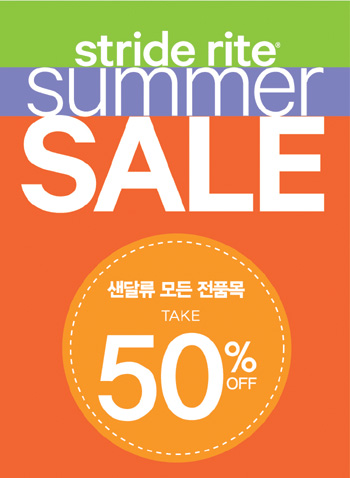 아동화 전문 브랜드 ‘스트라이드 라이트(Stride rite)’는 8월 한달 간 여름 샌들 전 상품을 50% 할인된 가격으로 구입할 수 있는 ‘서머 세일’을 진행한다.