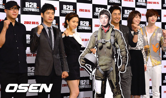 8일 오후 서울 왕십리 CGV에서 진행된 영화 '알투비:리턴투베이스'(김동원 감독, 이하 'R2B') 언론시사회에서 출연배우들이 포즈를 취하고 있다.