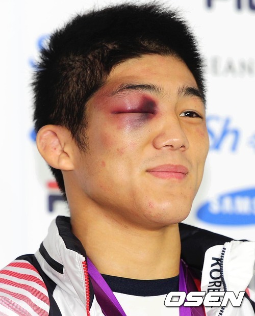 김현우,'멍든 눈에도 입가에는 미소가'