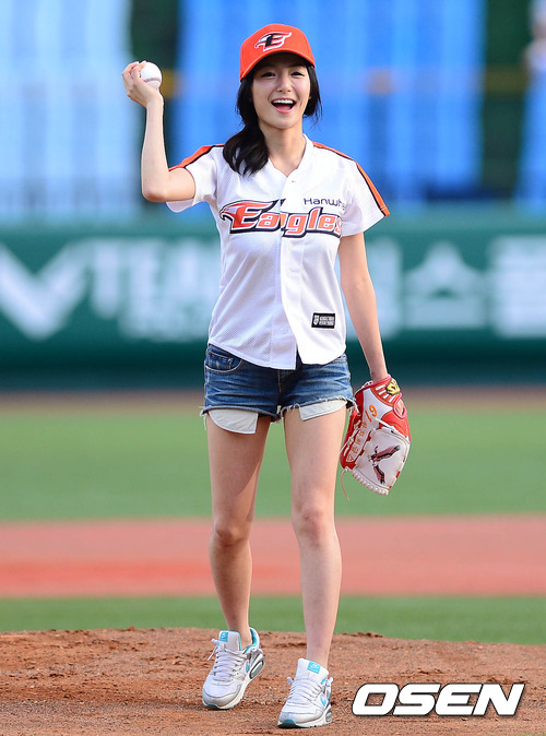8일 오후 대전구장에서 열린 '2012 팔도 프로야구' 한화 이글스와 두산 베어스의 경기 시작 전 써니데이즈 정수정이 시구를 하고 있다.