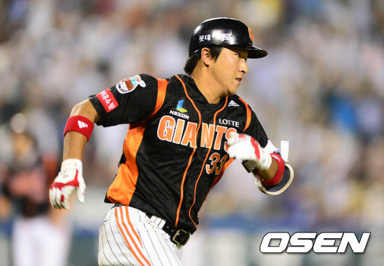 8일 오후 서울 잠실야구장에서 열린 '2012 팔도 프로야구' LG 트윈스와 롯데 자이언츠의 경기, 4회초 2사 3루 롯데 정훈이 좌전 적시 2루타를 치고 전력으로 달리고 있다.