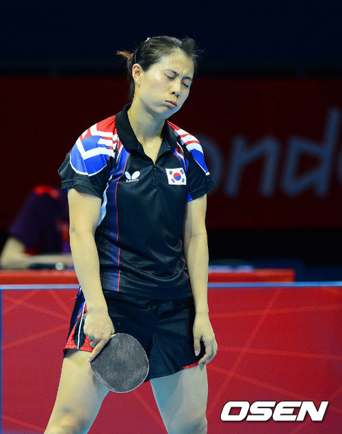 하지만 이번 런던올림픽서는 7회 연속 메달 획득의 명맥을 이어가지 못했다. 17위에 있던 랭킹을 5위까지 끌어올려 개인전 3번 시드를 받아냈던 '맏언니' 김경아는 8강전서 싱가포르의 펑톈웨이에 무릎을 꿇었고, 박미영은 16강에서 만리장성의 벽을 넘지 못했다.