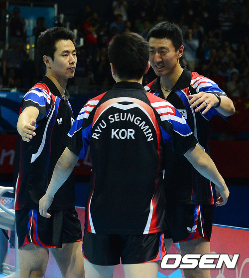 오상은(35, 세계 11위, 대우증권) 주세혁(32, 10위) 유승민(30, 17위, 이상 삼성생명)으로 이루어진 한국 남자 탁구 대표팀은 8일(이하 한국시간) 영국 런던에 위치한 엑셀 노스 아레나서 열린 '2012 런던 올림픽 탁구 남자 단체전' 중국과 결승전서 0-3(1-3 1-3 0-3)으로 패하며 은메달을 목에 걸었다.
