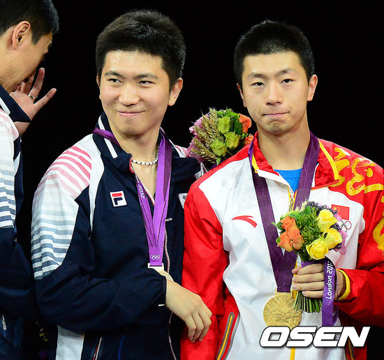 오상은(35, 세계 11위, 대우증권) 주세혁(32, 10위) 유승민(30, 17위, 이상 삼성생명)으로 이루어진 한국 남자 탁구 대표팀은 8일(이하 한국시간) 영국 런던에 위치한 엑셀 노스 아레나서 열린 '2012 런던 올림픽 탁구 남자 단체전' 중국과 결승전서 0-3(1-3 1-3 0-3)으로 패하며 은메달을 목에 걸었다.