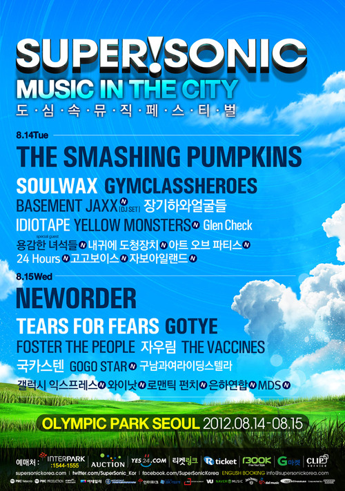 이날 '슈퍼소닉2012'에는 전세계적으로 3천만장의 앨범 판매고를 기록한 슈퍼 밴드 스매싱 펌킨스(Smashing Pumkins), 신스 팝(Synthpop)의 거장 뉴 오더(New Order), 영국 출신의 세계적인 일렉트로닉 듀오 베이스먼트 잭스(Basement Jaxx), 빌보드 싱글 차트 8주 연속 1위에 빛나는 팝 뮤지션 고티에(Gotye), 2012년 그래미 시상식에서 3개 부문에 오른 포스터 더 피플(Foster the People)과 벨기에를 대표하는 뮤지션 소울왁스(Soulwax), 80년대 최고의 인기팀 티어스 포 티어스(Tears for Fears) 등 세계 유명 뮤지션이 참여한다.