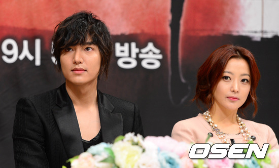 9일 오후 서울 목동 SBS 사옥에서 진행된 SBS 새 월화 드라마 '신의' (연출 김종학) 제작발표회에서 배우 이민호와 김희선이 기자회견을 갖고 있다.