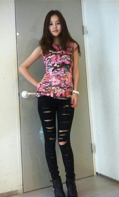 공개된 사진 속에는 우리가 문 앞에 서서 한손을 허리에 올리고 포즈를 취하고 있다. 그는 화려한 색감의 상의와 군데군데 찢어진 스키니 바지를 입고 서 있다. 특히 그는 부러질 것 같은 젓가락 다리로 늘씬한 몸매를 과시해 놀라움을 자아냈다.