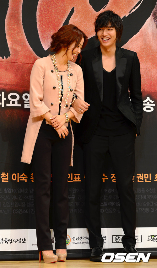 9일 오후 서울 목동 SBS 사옥에서 진행된 SBS 새 월화 드라마 '신의' (연출 김종학) 제작발표회에서 배우 김희선과 이민호가 포토타임 중 환하게 웃고 있다.
