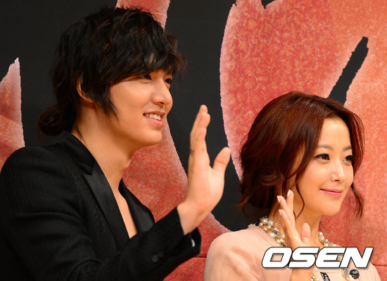 9일 오후 서울 목동 SBS 사옥에서 진행된 SBS 새 월화 드라마 '신의' (연출 김종학) 제작발표회에서 배우 이민호와 김희선이 포토타임을 갖고 있다.