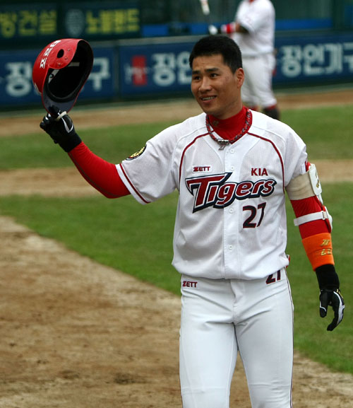 선동렬 KIA 감독은 9일 광주 넥센전에 앞서 김상현을 1군 엔트리에서 제외했다. 이유는 오른쪽 무릎 연골 파열이 의심되기 때문이다. 전날 수비도중 오른쪽 무릎에 충격을 받아 통증을 호소했다. 또 다시 이탈과 함께 공백이 예상된다.