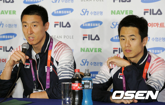 [OSEN=런던(영국),올림픽공동취재단] 9일 (한국시간) 영국 런던 하이드 파크 내 코리아하우스에서 태권도 은메달리스트 이대훈(20, 용인대)과 남자 탁구 단체 은메달리스트 오상은(35, 세계 11위, 대우증권) 주세혁(32, 10위)이 기자회견을 가졌다.