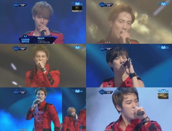 초신성은 9일 오후 방송된 케이블채널 엠넷 ‘엠카운트다운’에 출연해 신곡 ‘폭풍 속으로(She's gone)’를 열창했다.