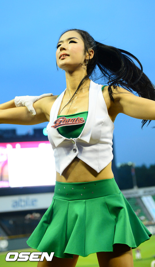 9일 서울 잠실구장에서 열린 '2012 팔도 프로야구' LG 트윈스와 롯데 자이언츠의 경기에서 롯데 치어리더 박기량이 응원을 하고 있다.
