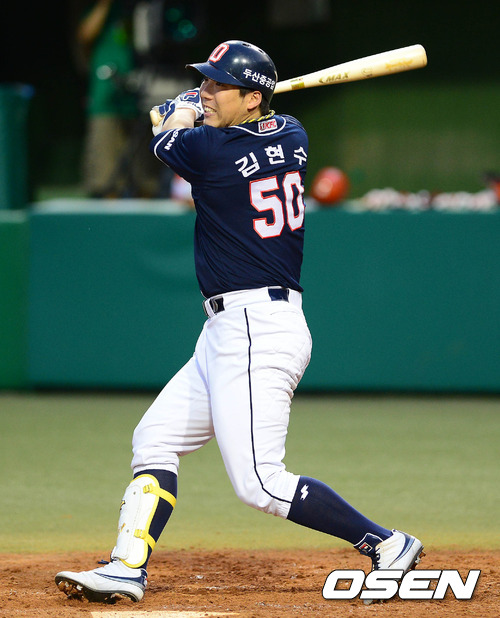 김현수의 방망이는 1회 시작부터 불을 뿜었다. 허경민-김재호의 연속 안타로 잡은 무사 1·3루에서 한화 선발 유창식의 2구째 낮은 직구를 받아쳐 우중간 적시타를 터뜨리며 기선제압을 이끌었다. 2회 2사 1루에서는 볼넷, 4회 주자없는 상황에서는 중견수 뜬공.
