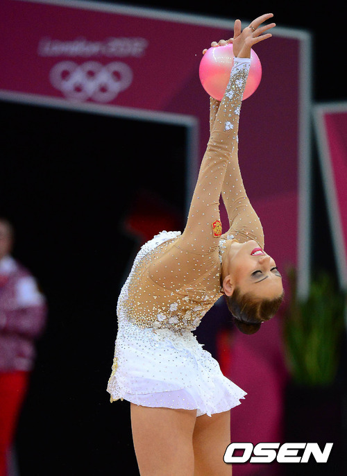 9일(한국시간) 영국 런던의 웸블리 아레나에서 열린 '2012 런던올림픽' 리듬체조 로테이션2에서 러시아 카나예바가 볼 연기를 펼치고 있다.