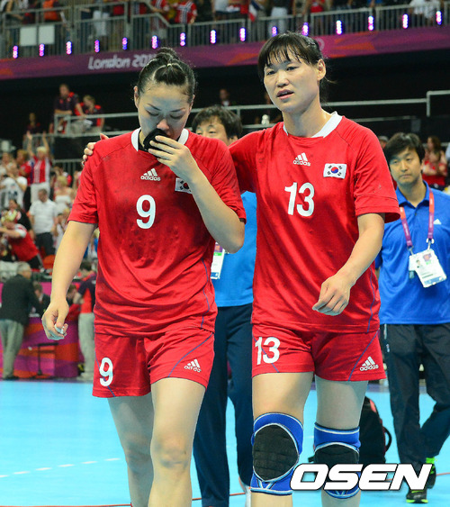 한국이 10일(한국시간) 새벽 영국 런던 코퍼박스에서 열린 2012 런던올림픽 여자 핸드볼 준결승전에서 노르웨이에 25-31아쉬운 패배를 당했다. 4년 전 2008 베이징올림픽 결승 진출 문턱에서 석연치 않은 한국의 발목을 잡았던 노르웨이와 '리턴매치'서 다시 한 번 패하며 악몽이 되풀이된 셈이다.