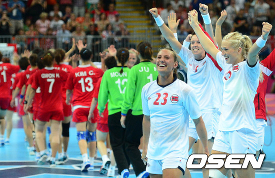 한국이 10일(한국시간) 새벽 영국 런던 코퍼박스에서 열린 2012 런던올림픽 여자 핸드볼 준결승전에서 노르웨이에 25-31아쉬운 패배를 당했다. 4년 전 2008 베이징올림픽 결승 진출 문턱에서 석연치 않은 한국의 발목을 잡았던 노르웨이와 '리턴매치'서 다시 한 번 패하며 악몽이 되풀이된 셈이다.